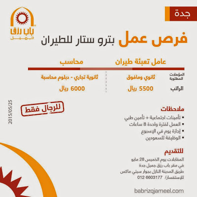 باب رزق جميل Bab Rizq Jameel On Twitter للإناث فقط وظائف طاقم خدمة المؤهلات ثانوية عامة وما فوق المنطقة جدة الراتب ابتداء من ٤٥٠٠ ريال لتقديم الطلبات الحضور لمقر شركة باب