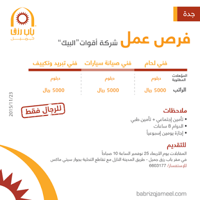 باب رزق جميل Bab Rizq Jameel On Twitter وظائف للرجال و للنساء طاقم خدمة مطاعم المؤهلات ثانوية عامة وما فوق المنطقة جدة الراتب ٤٥٠٠ ريال لتقديم الطلبات الحضور لمقر شركة