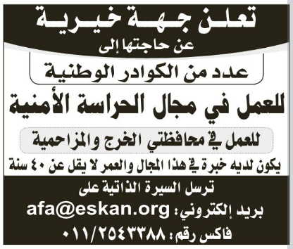 وظائف حراس امن في جمعية خيرية في الخرج و المزاحمية