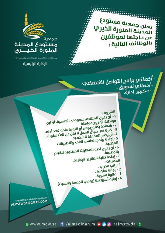 جمعية مستودع المدينة المنورة تعلن عن وظائف شاغرة للرجال وظائف اليوم