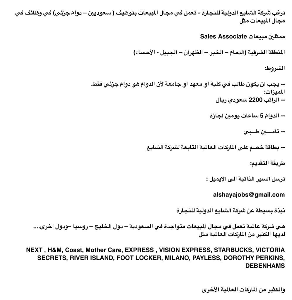 وظائف الأحساء Pa Twitter رجال الأحساء ترغب شركة الشايع الدولية للتجارة بتوظيف سعوديين دوام جزئي في وظائف في مجال المبيعات Http T Co 2t2llb1t4m